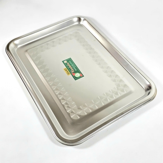 - Khay được sản xuất theo phương pháp dập thủy lực cường độ cao, sản phẩm bền đẹp. viền khay bo tròn mềm mại, tinh tế không sắc nhọn an toàn khi sử dụng.