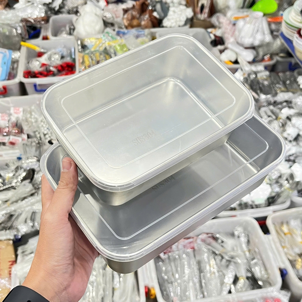 Khay Inox 304 Có Nắp Nhựa 2 Size Tiện Dụng